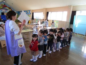 お誕生日会では、大きなかぶのエプロンシアターをしました。「うんとこしょ!どっこいしょ!」と、大きな声で応援してくれましたね♡