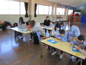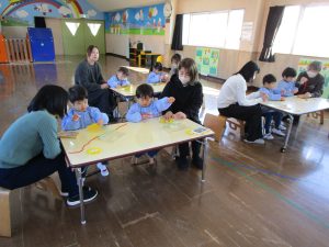 2週目は1月生まれのお友だちのお誕生日会をしたり、節分で使う鬼のお面を作ったりしました。
