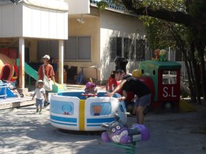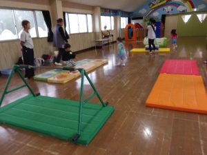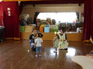 園庭遊びではまだまだ厳しい暑さが残っていましたが、日陰を選んで楽しそうに遊んでいました♪ 熱中症警報が出ていた日は、ホールにマットや鉄棒を出して遊びました(^^)