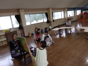 お誕生日会では相変わらず大型絵本に夢中(笑)! 長~い蛇に驚いていましたね。