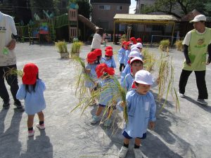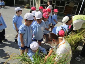 たんぽぽ組さんは初めての稲刈りに挑戦!
