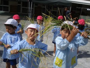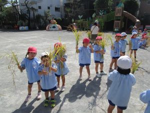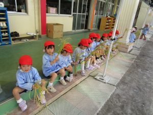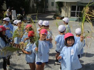 ひまわり組さんは先生のお手伝いが無くても自分の力だけでハサミを上手に使って稲刈りが出来ました!