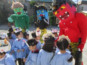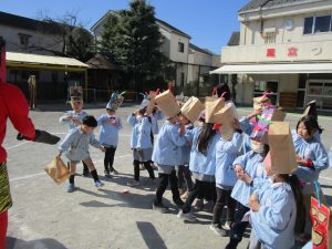 2月3日(火)に園庭で節分の豆まきを行いました。