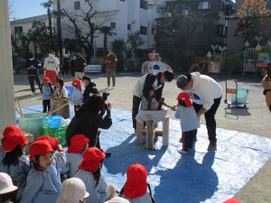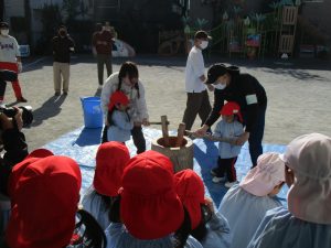 つくしんぼのお友だちもお家の人と一緒におもちつきをしましたよ♪