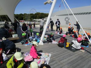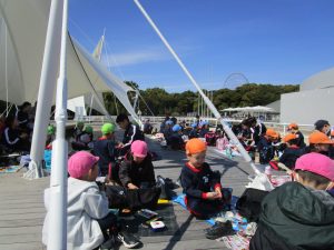 お昼は広場に集まり、みんなでお弁当を食べました♪