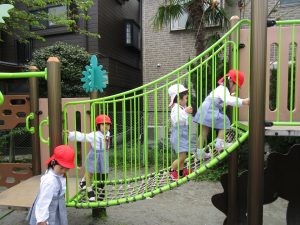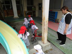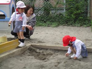 遊具で遊んだり、三輪車に乗ったり、お砂遊びをしたり、ダンゴムシを探したり・・・