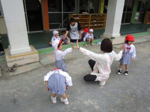 楽しみにしていたお外遊びでは先生からお外遊びのお約束を教えてもらいました。