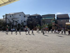 「お・は・し・も」のお約束を守って、園庭に移動しました。