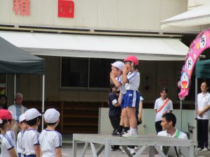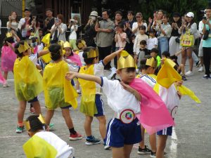 代表のお友だちのはじめの言葉から始まり、毎年恒例のYOSAKOIソーランや一人一人の頑張る姿が素敵だった障害物競走。