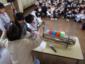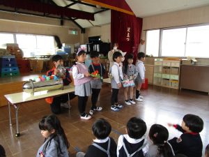 封入式ではすみれ組のお友だちが6年後の自分に向けて書いたメッセージカードをタイムカプセルに入れました。